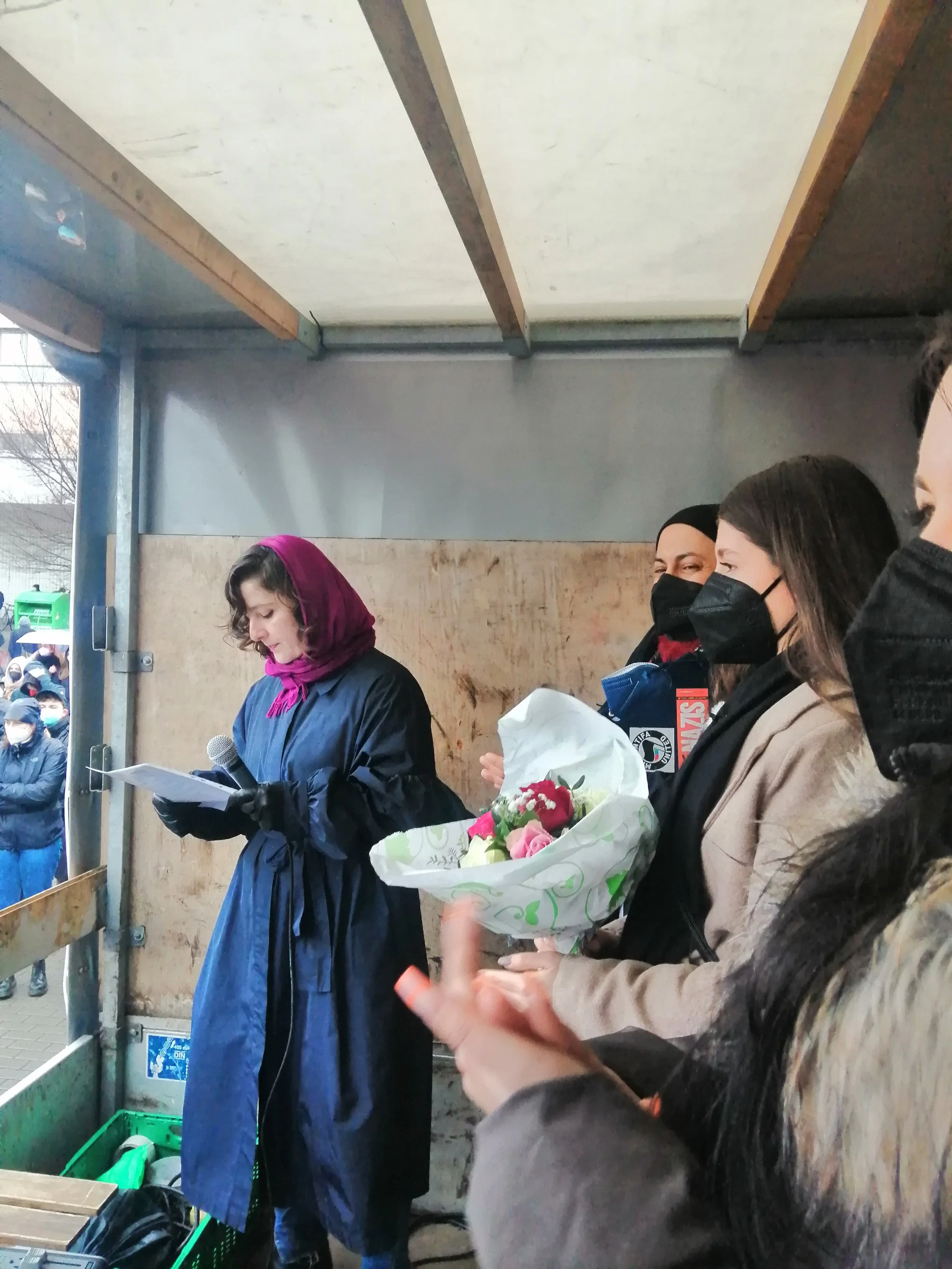 2 Redebeiträge von Kalsoumy Balde und Ulrike Düregger bei der Demo “Solidarität für Dilan” in 2022, anlässlich eines rassistsichen Übergriffs auf Dilan in der Nähe des S-Bahnhof Greifswalder Strasse in Berlin-Pankow.