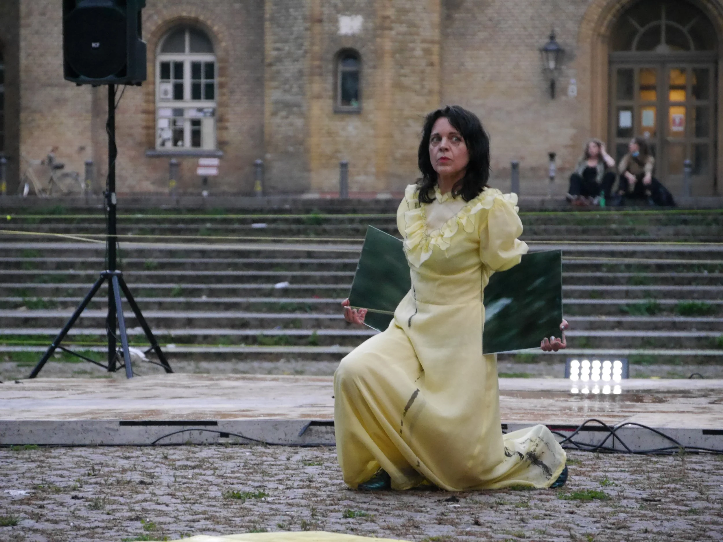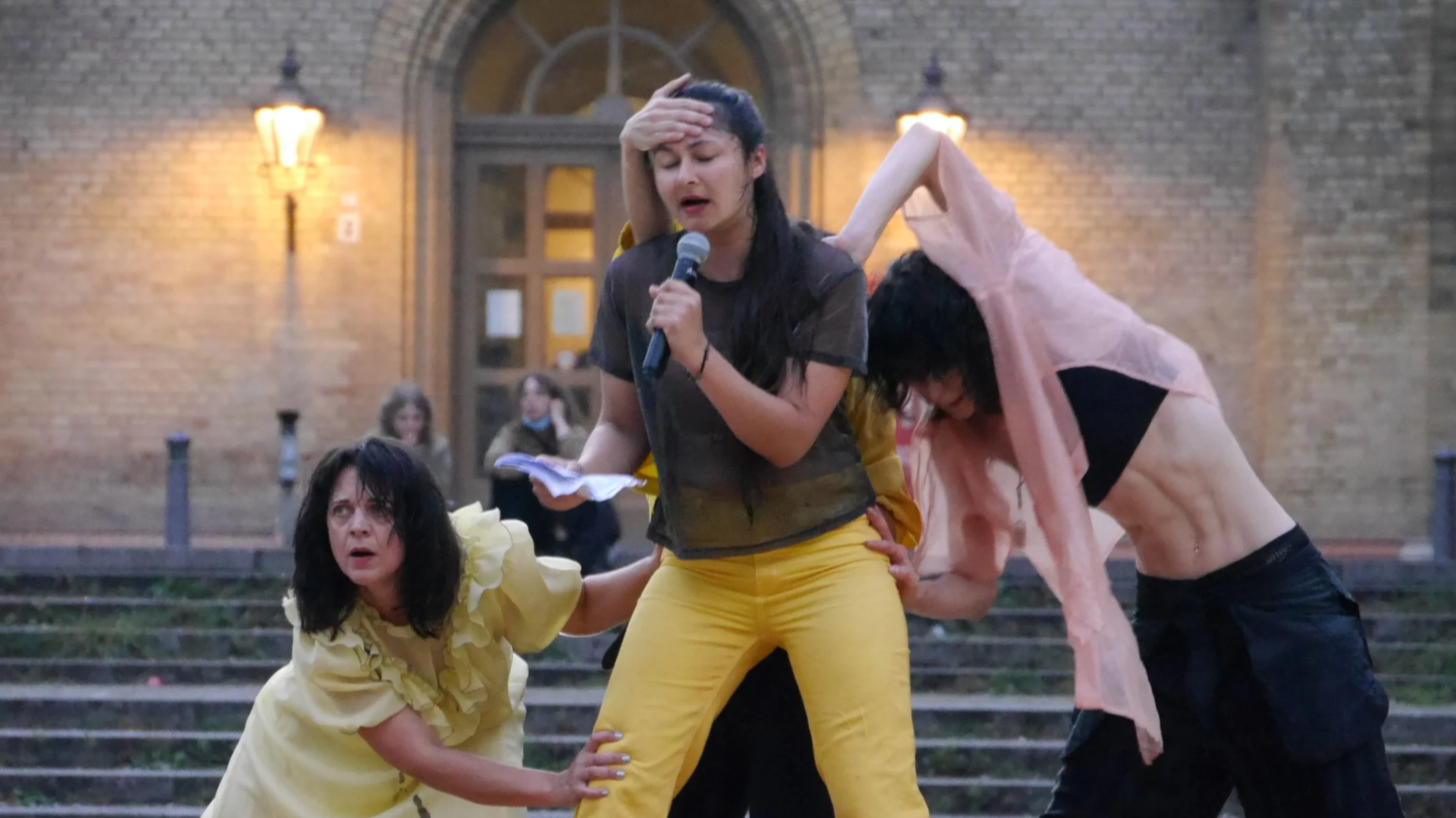 Performance Ana Kavalis, Alwine Klooz, Ulrike Düregger, Mira Sharma Dramaturgie Nina Rühmeier Presse Kerstin Böttcher Videoartist Nina Laçin